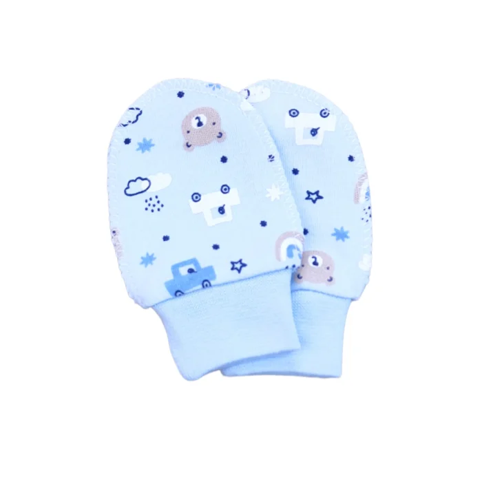 قفازات للأطفال مصنوعة بالكامل من القطن بنسبة 100%، مزينة بطبعات جميلة ومناسبة لبشرة الطفل الحساسة. توفر حماية ليدَي الطفل مع الحفاظ على راحته، وتُعد مثالية للاستخدام اليومي في جميع الفصول.